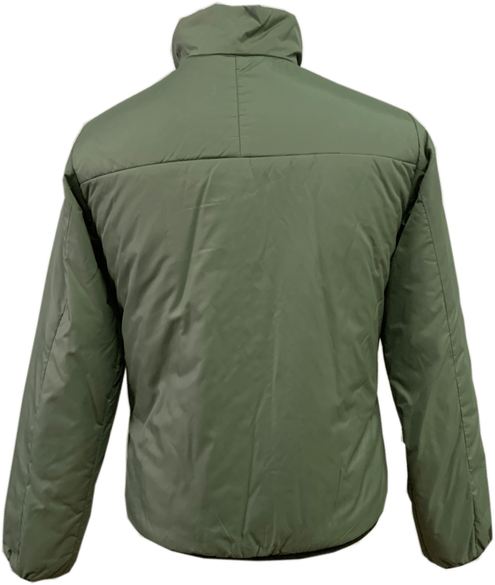 Unisex Jacket Thermal, Light Olive. CF and lower pocket closed by #5 coil zipper with ribbon pull tab,inside pocket includ storage bag.Hem/cuff opening have elastic binding.