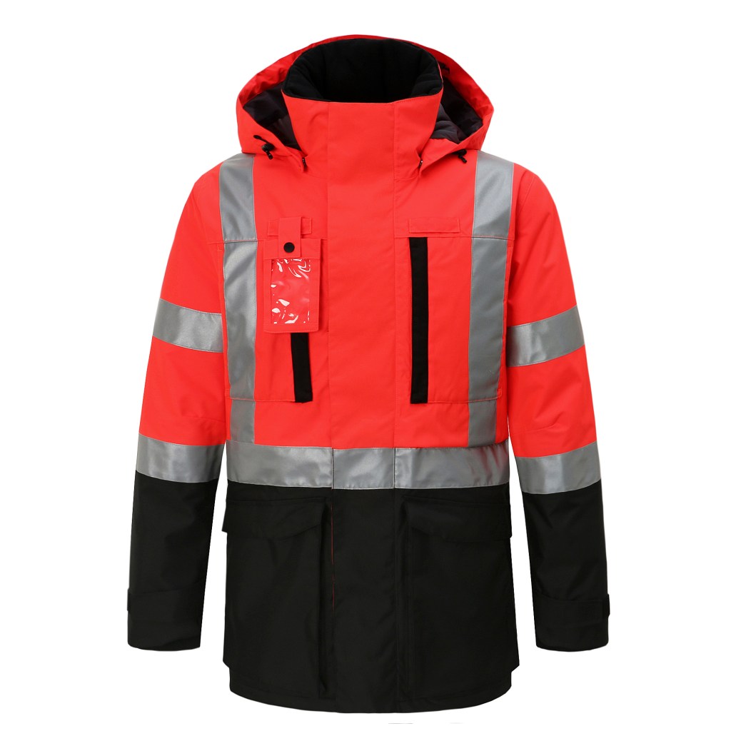 Four chest pockets in total: two next to CF closed by zipper, two side chest pockets. Waterproof underarm zipper for venting. 2 hidden media pockets, one is under the CF flap, and another is on the left side of the waistline. Two lower pockets with pleats have functions for both vertical and side pockets. Padding is 3M insulation. The nylon/spandex fabric lining makes the wearer more comfortable. Back venting at the yoke, keeps the parka warm and breathability.