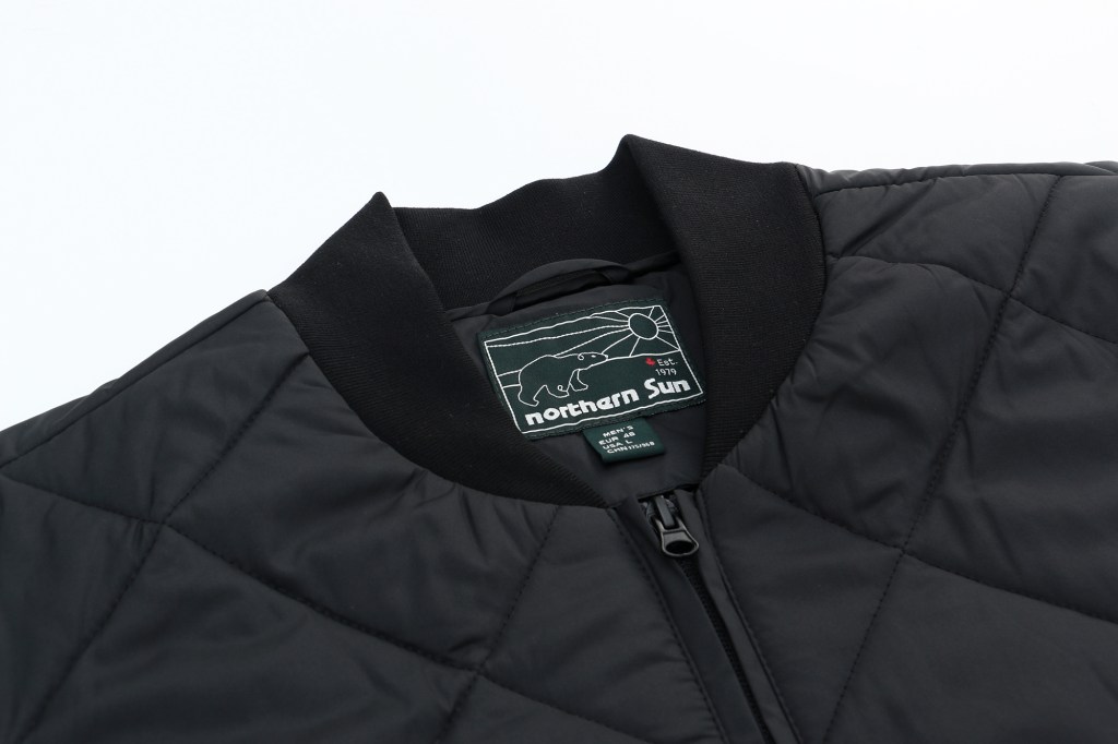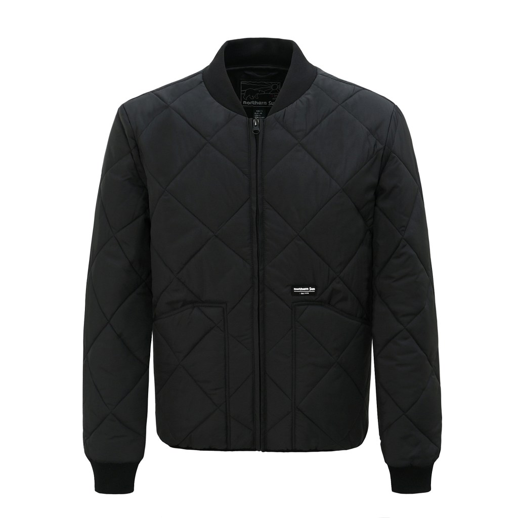 The jacket has a zippered closure, with ribbing at collar and sleeves.