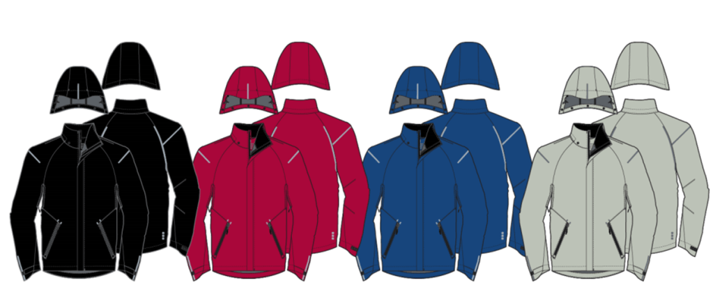 The shell fabric is 3layer softshell.CF zipper has a flap, with easy grip zipper pulls. The shoulder and pocket end has a reflective print. Cuff and hem have an adjustment system, and the Main seam has seam seal tape.