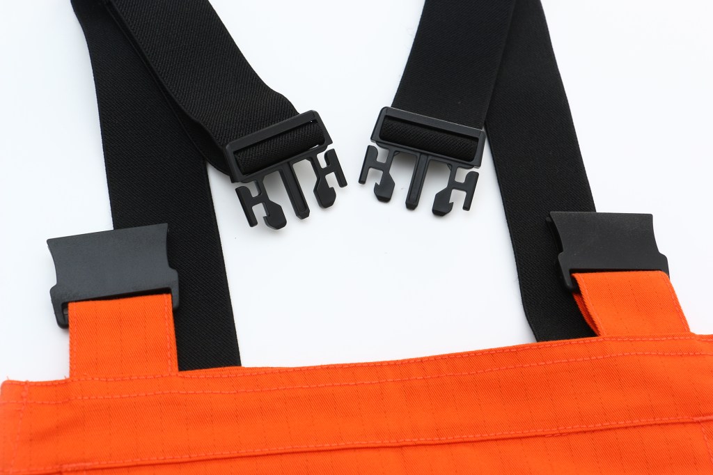 Overalls, cut with a regular straight leg fit for a comfortable and casual look. Side closure in the waist with snap buttons Back side in elastic waist part. Four slant hand pockets and two button