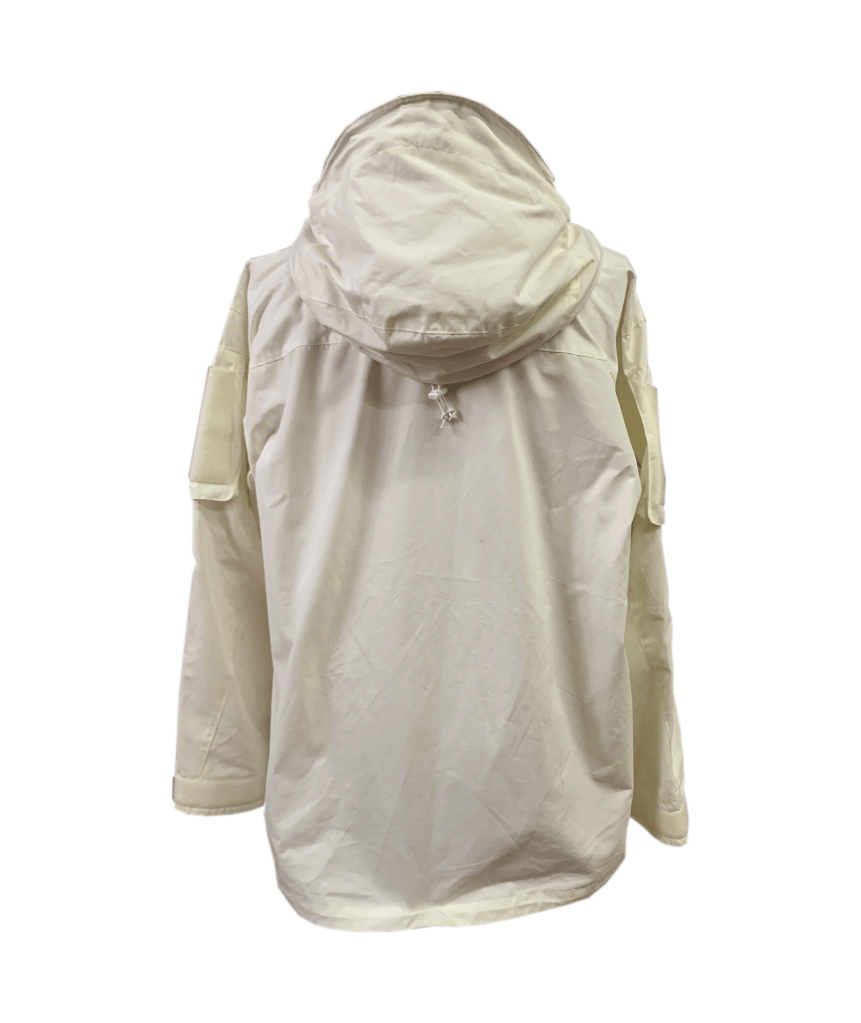 Waterproof and Windblock Jacket, 100% poly 176gsm.Shell fabric have windproof/waterproof/oil proof function.Lining is talson lining100gsm. Cover jacket in snow weather.All CF/pocket/vent zipper is waterpoof.Hood and hem have elastic adjustment system.Front chest/sleeve bag have loop velcro.