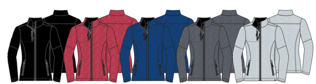 The shell fabric is recycled poly 3layer softshell.CF zipper has easy grip zipper pulls. The chest pocket and lower pocket are closed by contrast zipper.